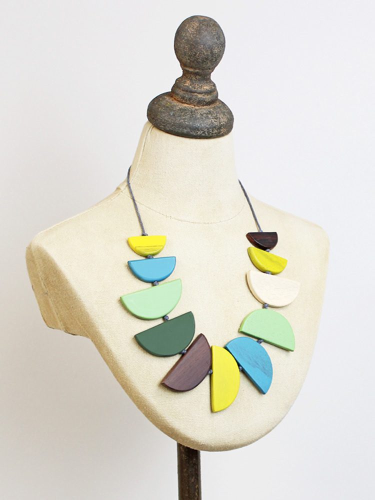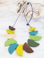 FB1403GN WOODEN HALF MOON FAN NECKLACE