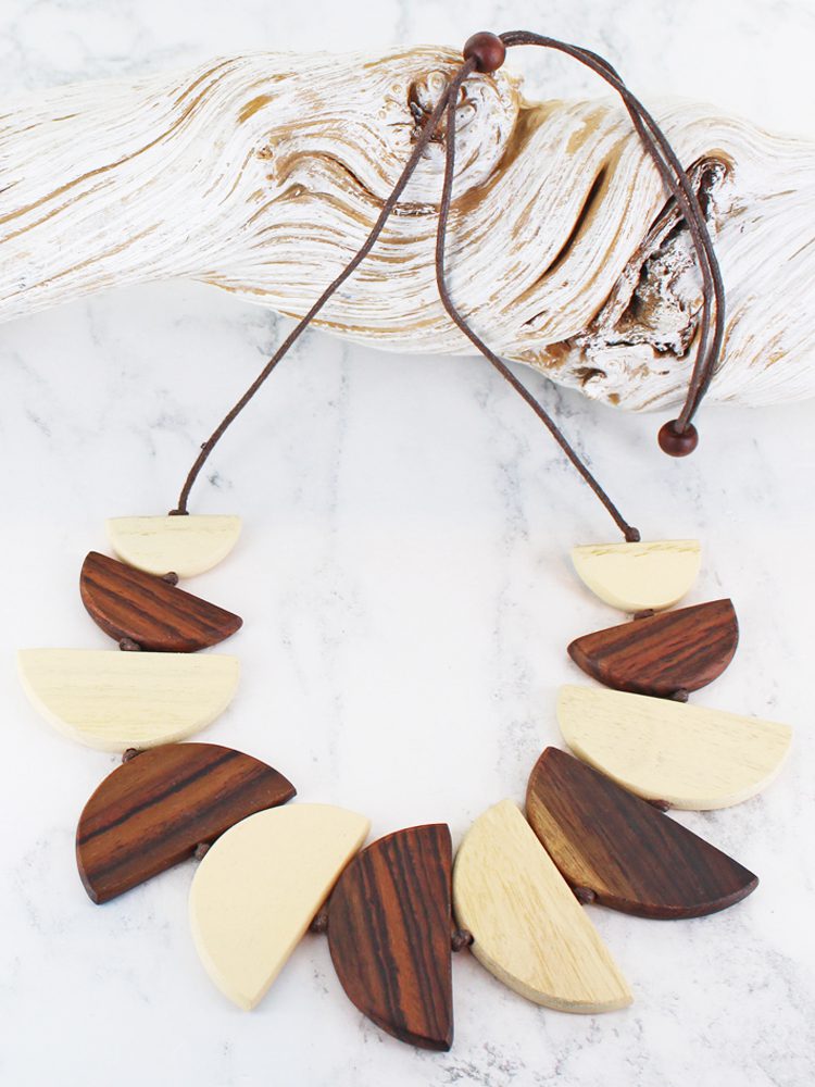 FB1403NT WOODEN HALF MOON FAN NECKLACE