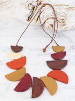 FB1403OR WOODEN HALF MOON FAN NECKLACE