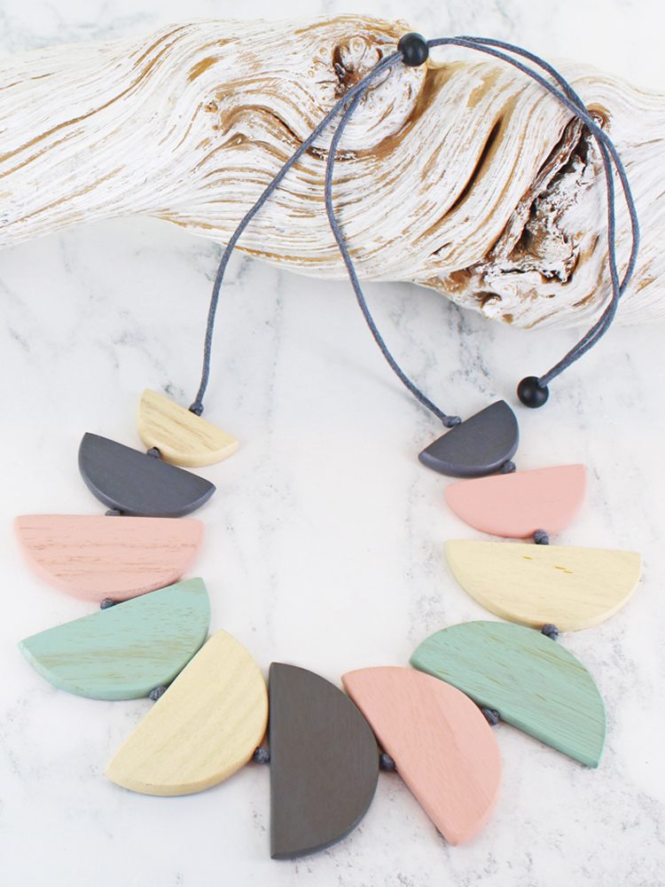 FB1403PK WOODEN HALF MOON FAN NECKLACE