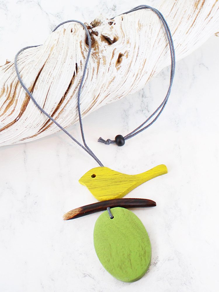 FB1406GN WOODEN BIRD PENDANT NECKLACE