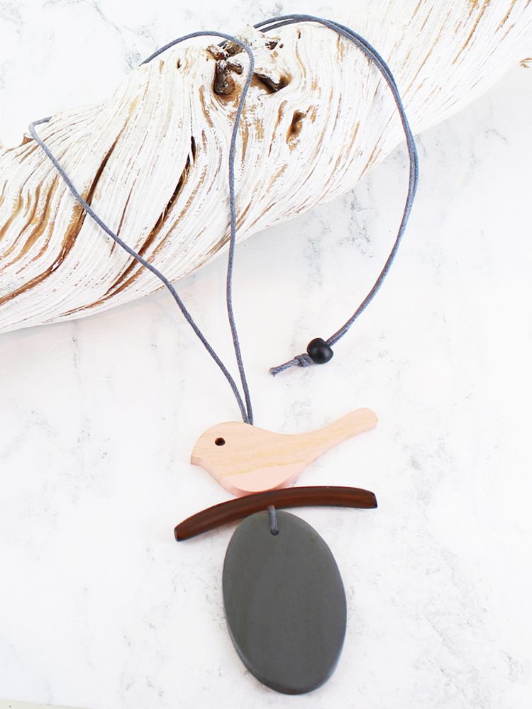 FB1406PK WOODEN BIRD PENDANT NECKLACE