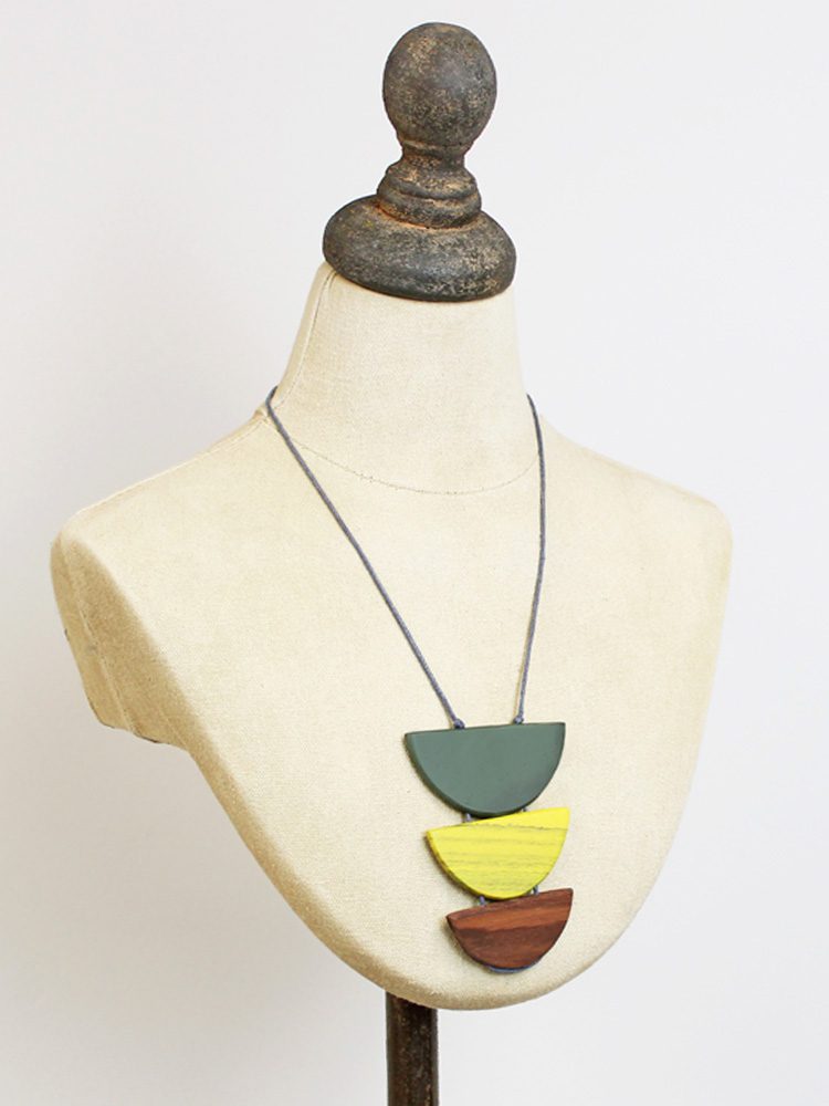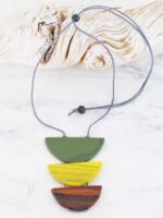 FB1407GN STACKED WOODEN HALF MOON PENDANT