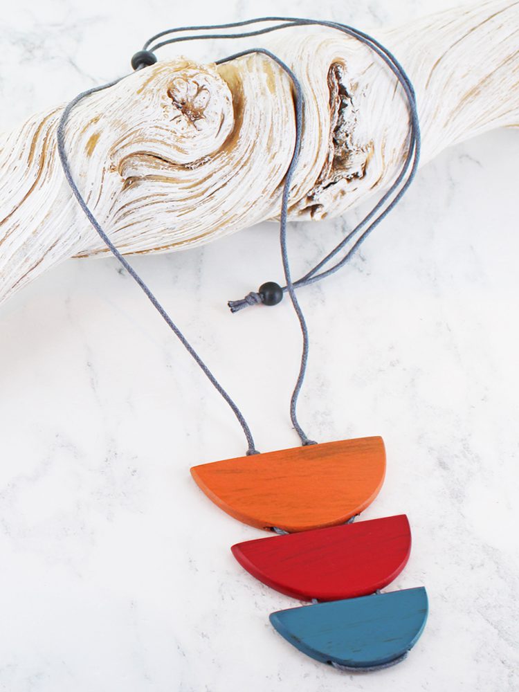 FB1407M STACKED WOODEN HALF MOON PENDANT