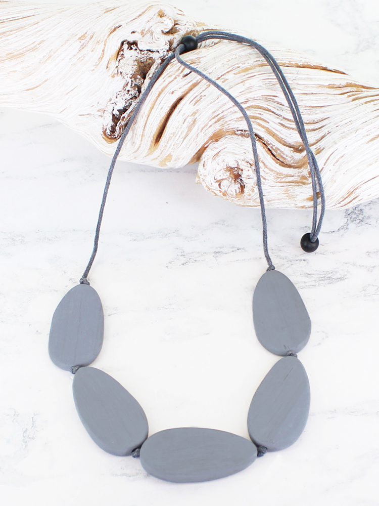 FB6302GY SHORT 5-PIECE WOODEN OVAL NECKLACE