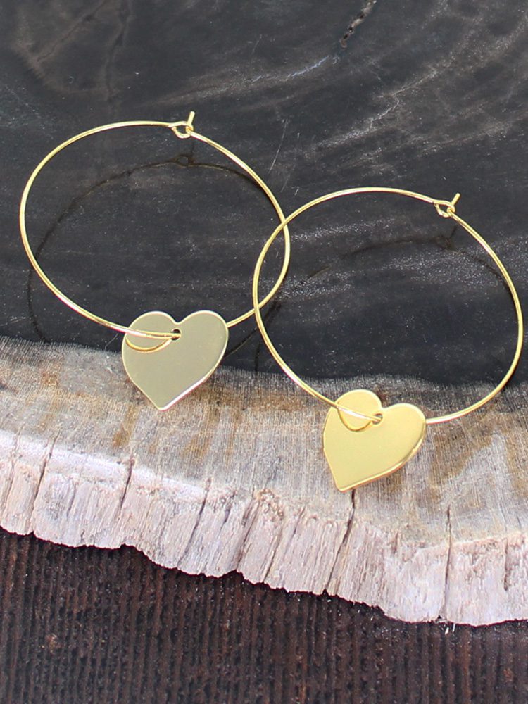 GP034H SIMPLE HOOP EARRING WITH HEART CHARM [GOLD-PLATE]
