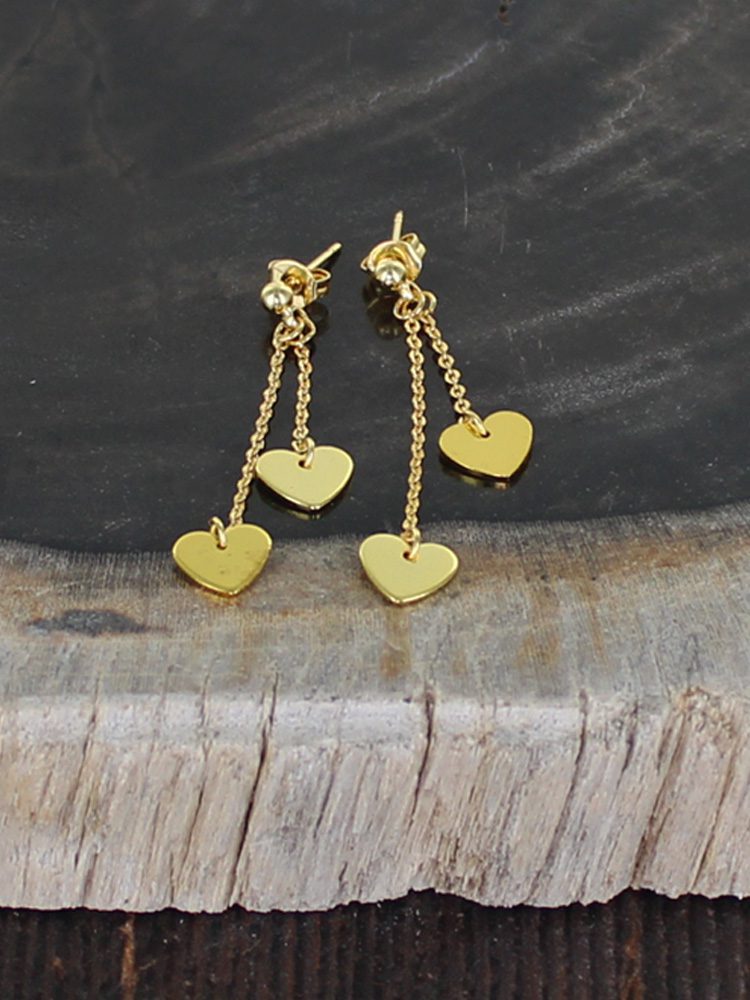 GP406H DOUBLE DROP CHARM STUD EARRINGS [GOLD-PLATE]