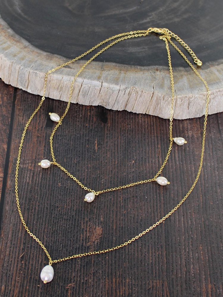 GP413 DOUBLE STRAND PEARL NECKLACE [GOLD-PLATE]