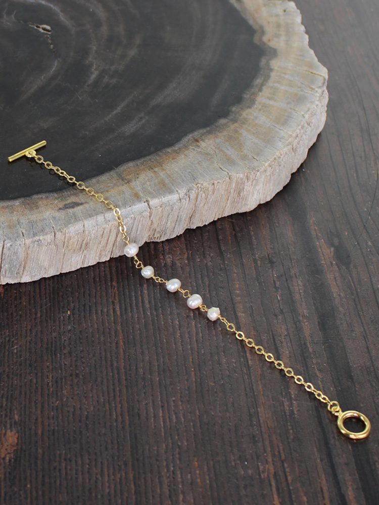 GP414 DELICATE CHAIN & PEARL BRACELET [GOLD-PLATE]