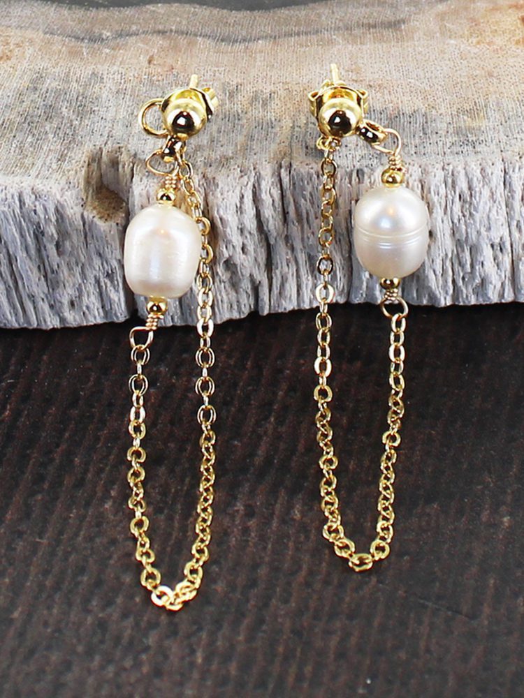 GP417 STUD EARRING WITH PEARL & DROP CHAIN [GOLD PLATE]