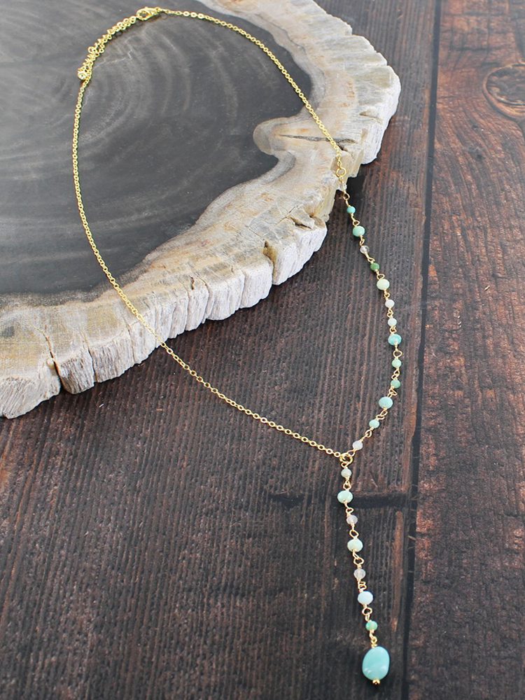 GP431AZ DELICATE DROP NECKLACE WITH AMAZONITE [GOLD PLATE]