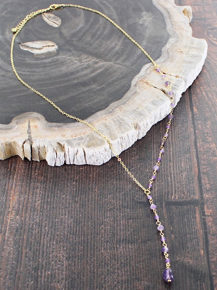 GP431AM DELICATE DROP NECKLACE WITH AMETHYST [GOLD PLATE]
