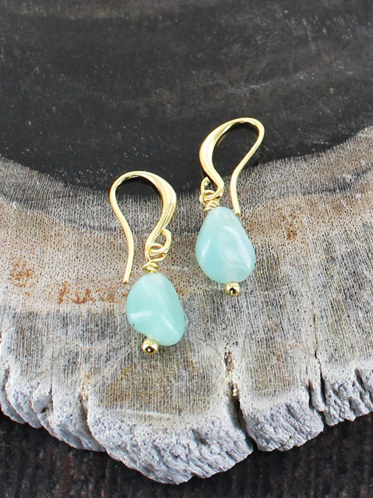 GP433AZ SIMPLE AMAZONITE DROP EARRING [GOLD PLATE]