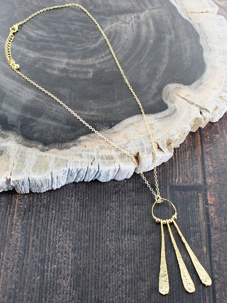 GP452 BEATEN TEARDROP & RING NECKLACE [GOLD PLATE]