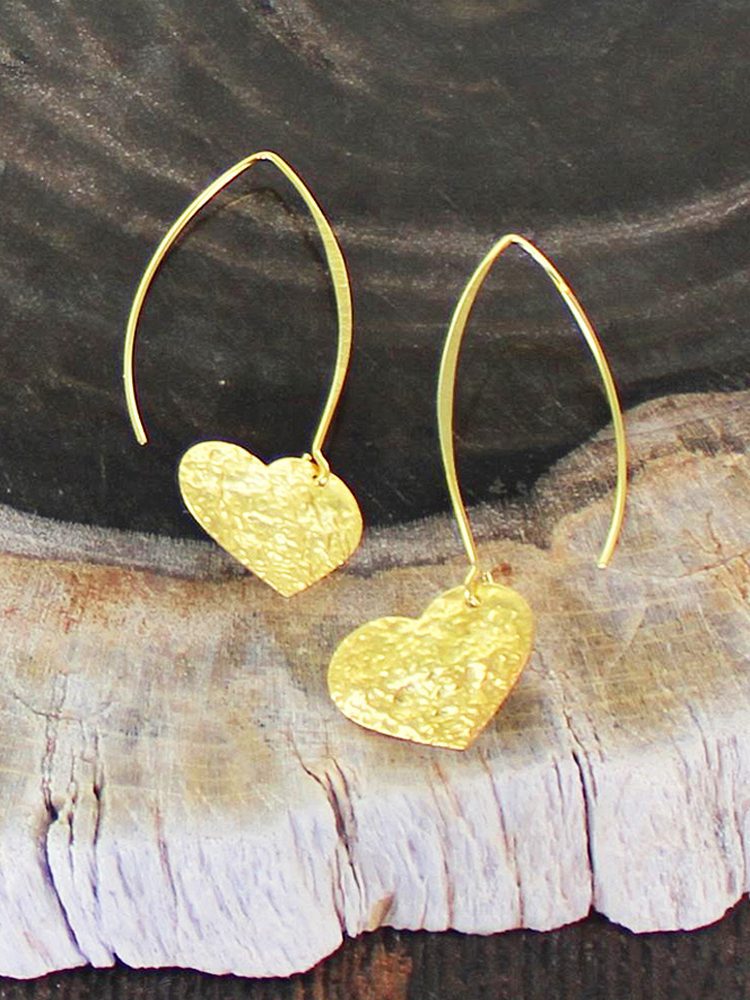 GP464H DROP EARRING WITH TEXTURED HEART CHARM [GOLD PLATE]