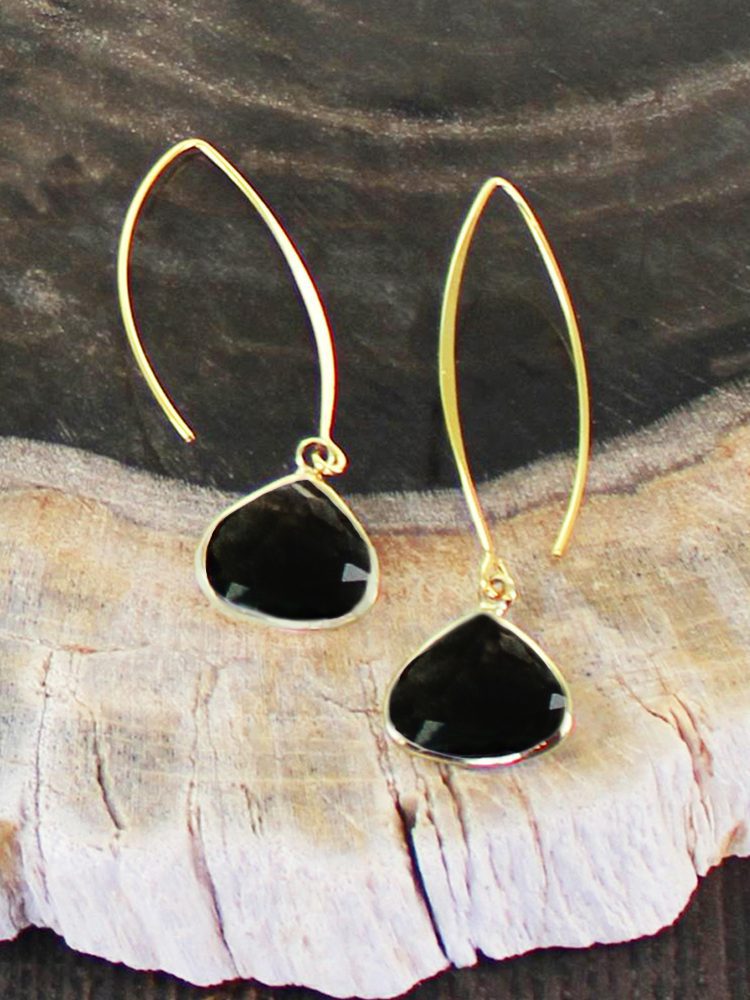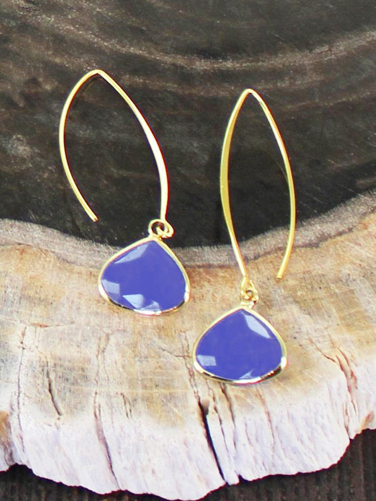 GP470GY DROP EARRING WITH GLASS CHARM [GOLD PLATE]