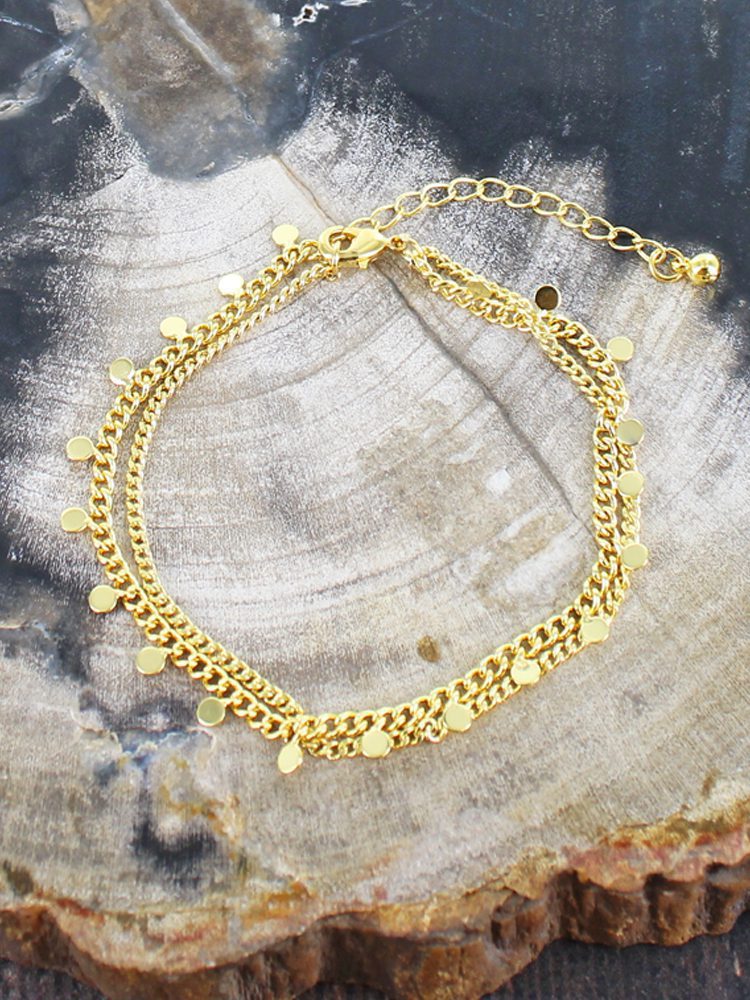 GP473 DOUBLE STRAND CHAIN & DISC BRACELET [GOLD-PLATE]