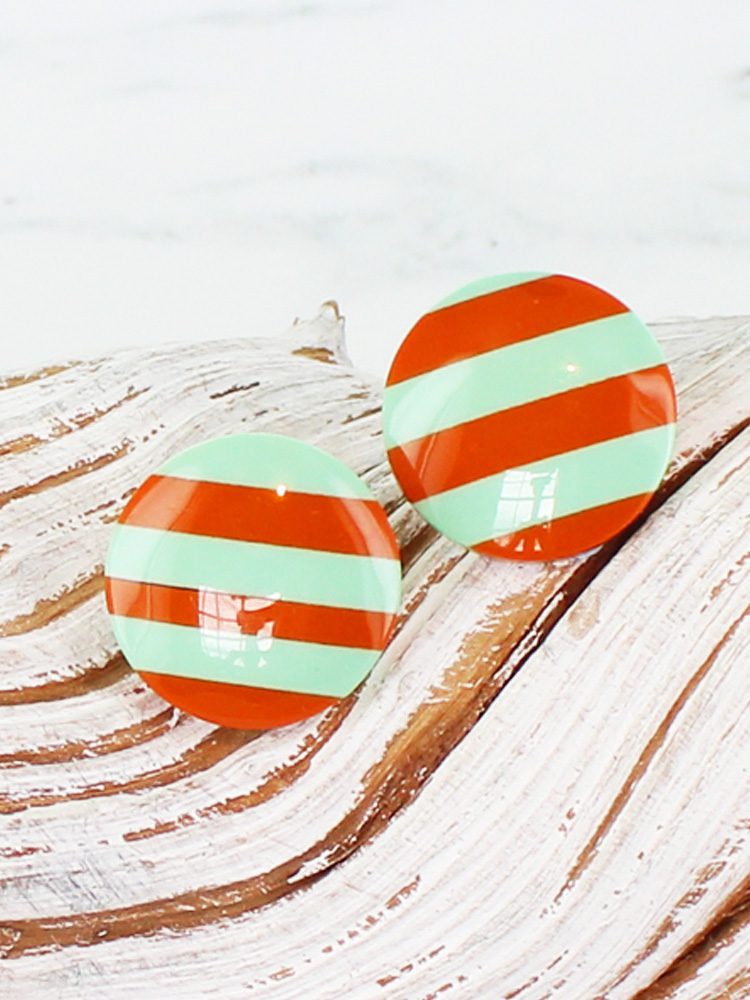 JP1021GM STRIPED RESIN STUD EARRING – GREEN & MINT
