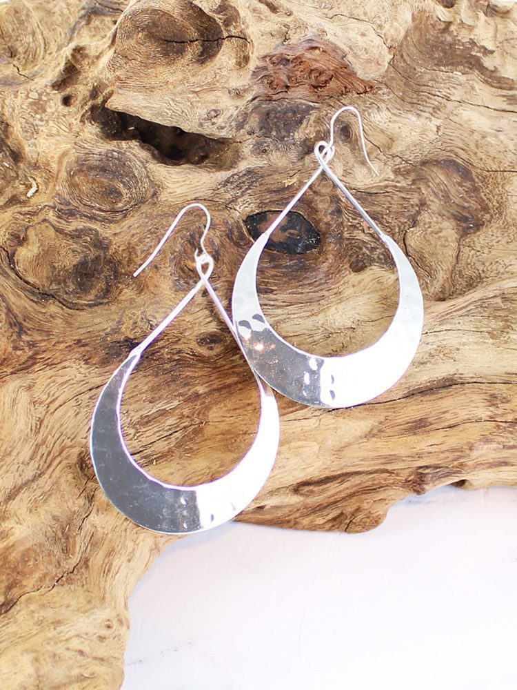 JP1034 SILVER BEATEN HOOP EARINGS