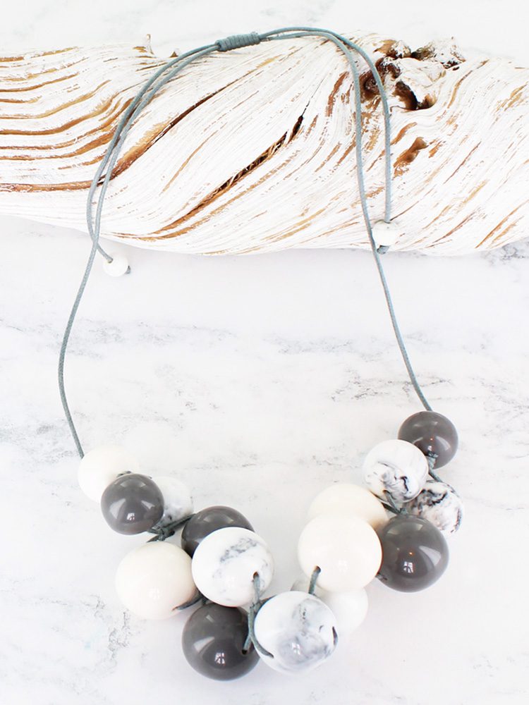 JP1103GY SMOKED RESIN BALL CLUSTER NECKLACE WITH ACCENT COLOUR