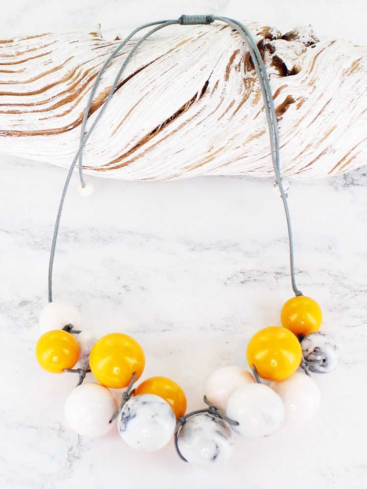 JP1103Y SMOKED RESIN BALL CLUSTER NECKLACE WITH ACCENT COLOUR
