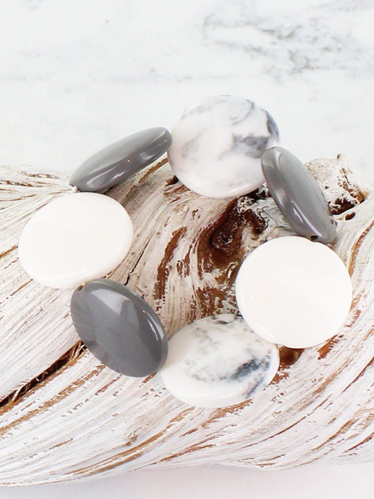 JP1105GY ELASTICATED RESIN DISC BRACELET WITH ACCENT COLOUR