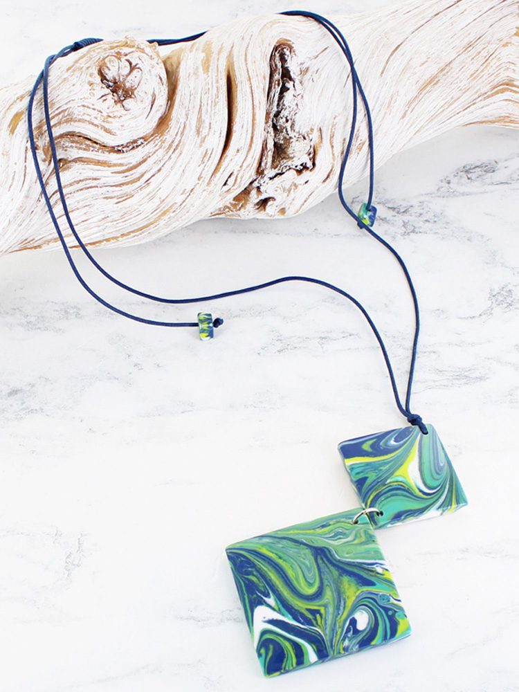 JP1302BLU MARBLED RESIN PENDANT NECKLACE