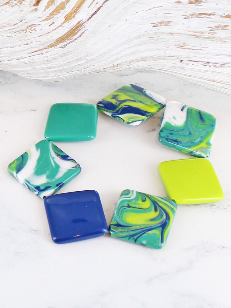 JP1303BLU ELASTICATED MARBLED RESIN BRACELET