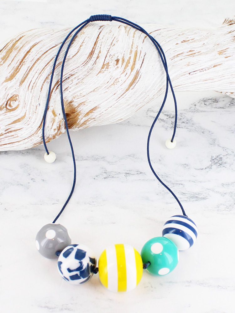 JP1305Y STRIPY RESIN BALL NECKLACE