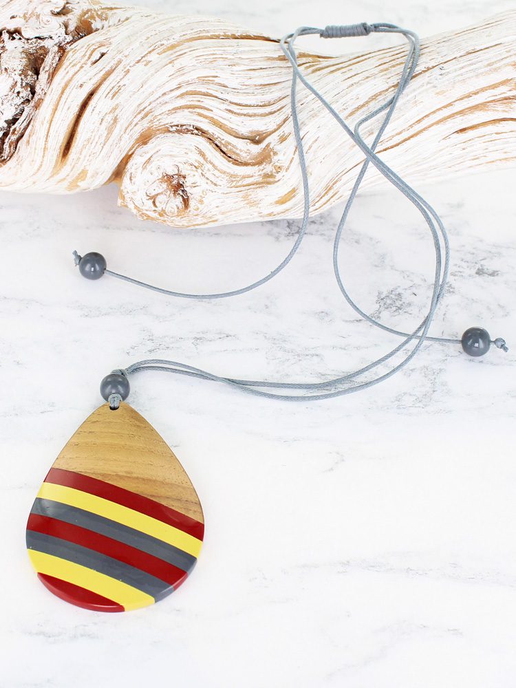 JP6100R RESIN & WOOD TEARDROP PENDANT NECKLACE