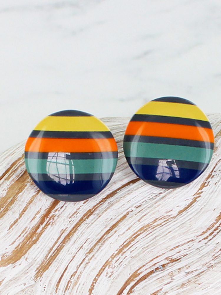 JP6205 STRIPED RESIN DISC STUD EARRINGS