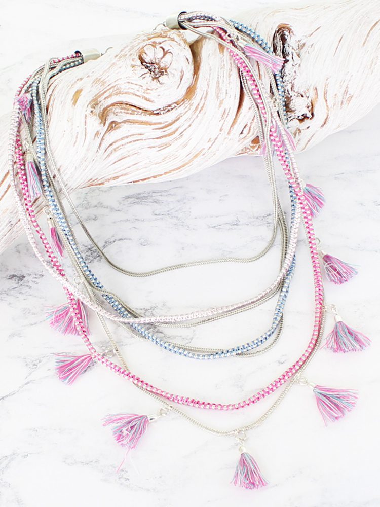 KH1807PK MULTI-STRAND TASSEL NECKLACE (PINK-GREY)