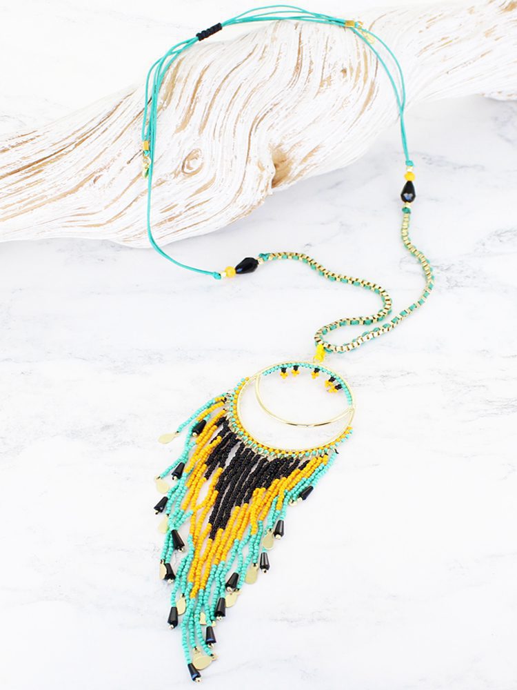 LB1310 RING & DROP BEAD PENDANT NECKLACE