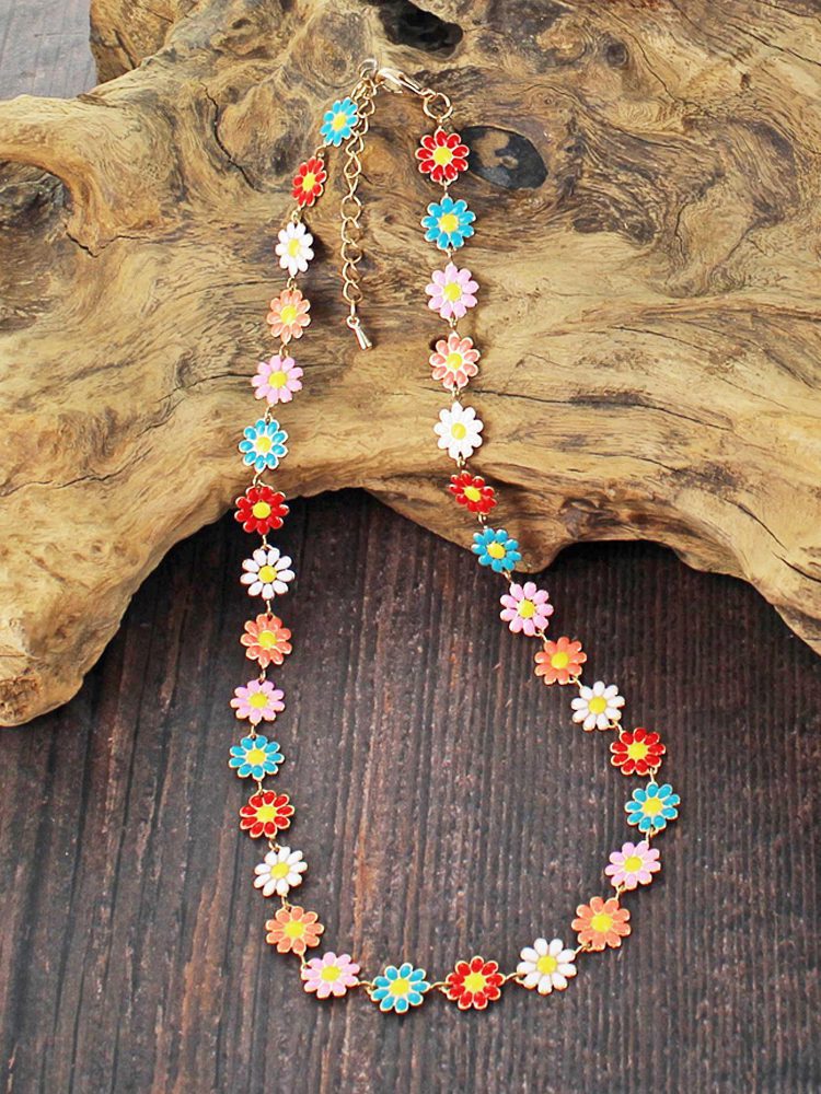 MA1405 ENAMEL FLOWER NECKLACE [GOLD-PLATE]