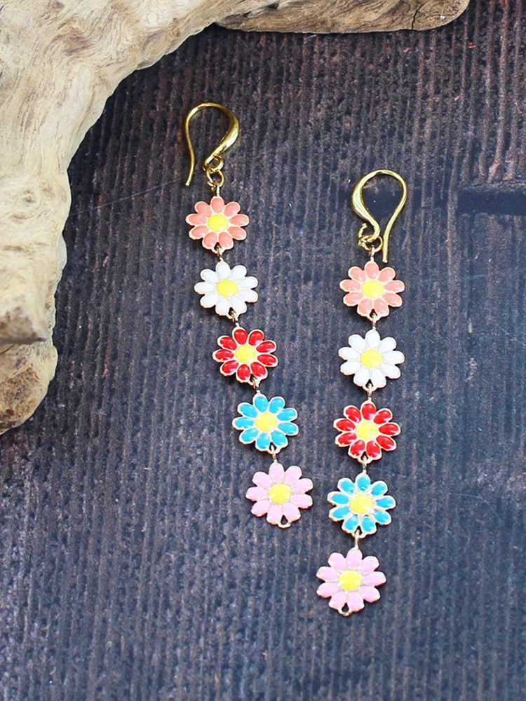 MA1408 ENAMEL FLOWER EARRINGS [GOLD-PLATE]