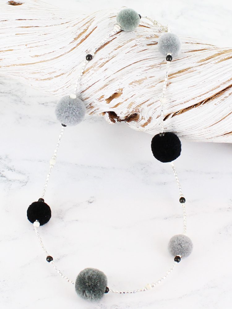MA6803BL SHORT MULTI POM POM NECKLACE