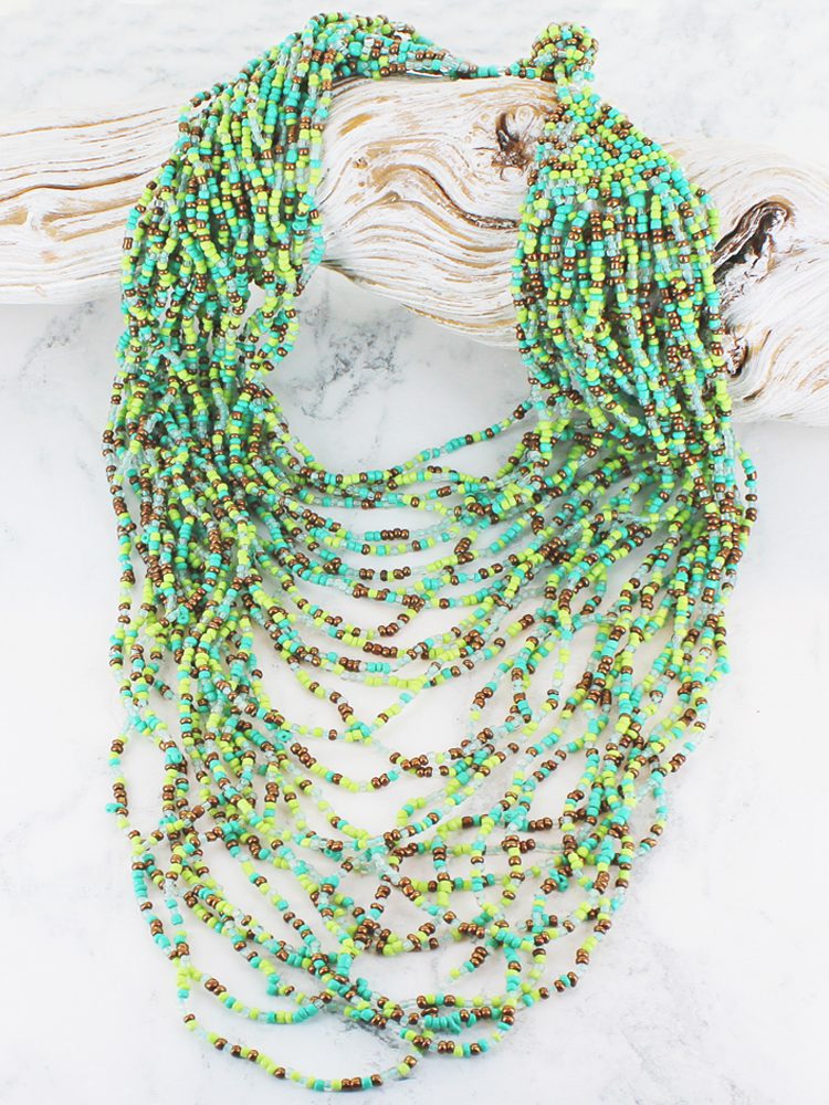 MD1402GN LONG MULTI-STRAND BEADED NECKLACE