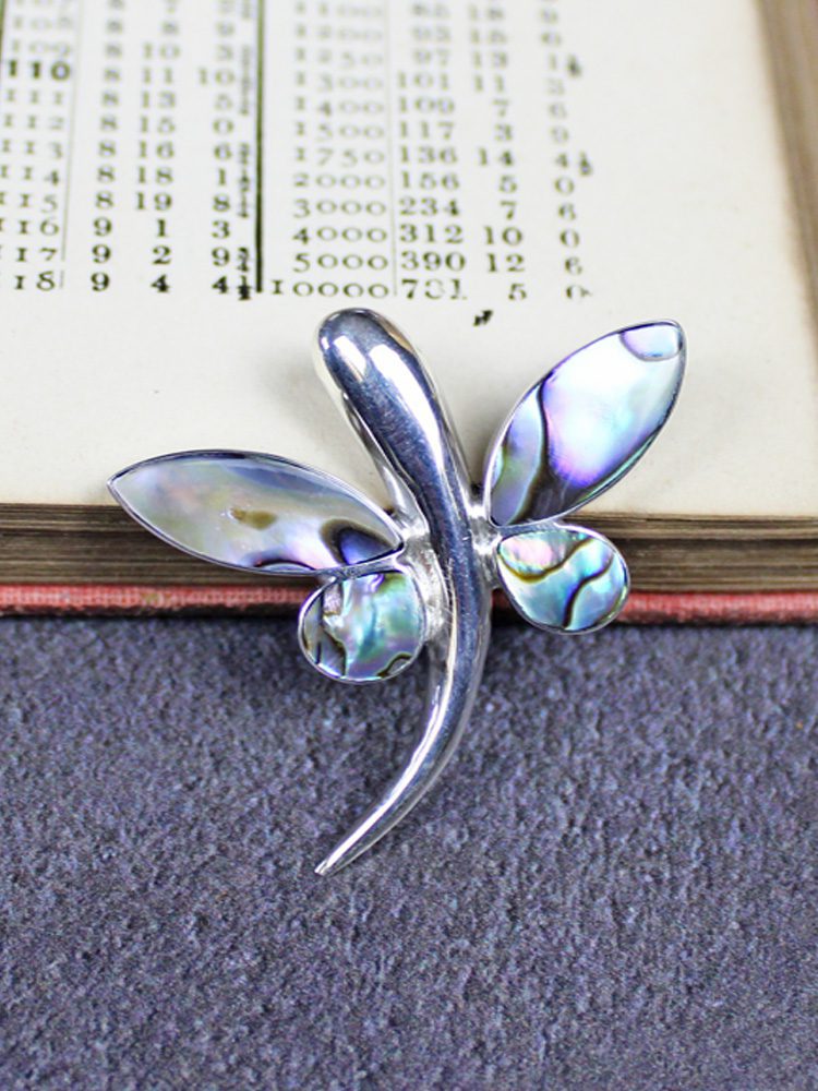 MM1706P SILVER & PAUA SHELL ABSTRACT DRAGONFLY PENDANT (4CM)