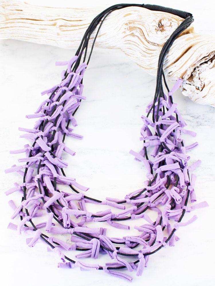 NB1302LC MULTI-STRAND KNOTTED JERSEY NECKLACE