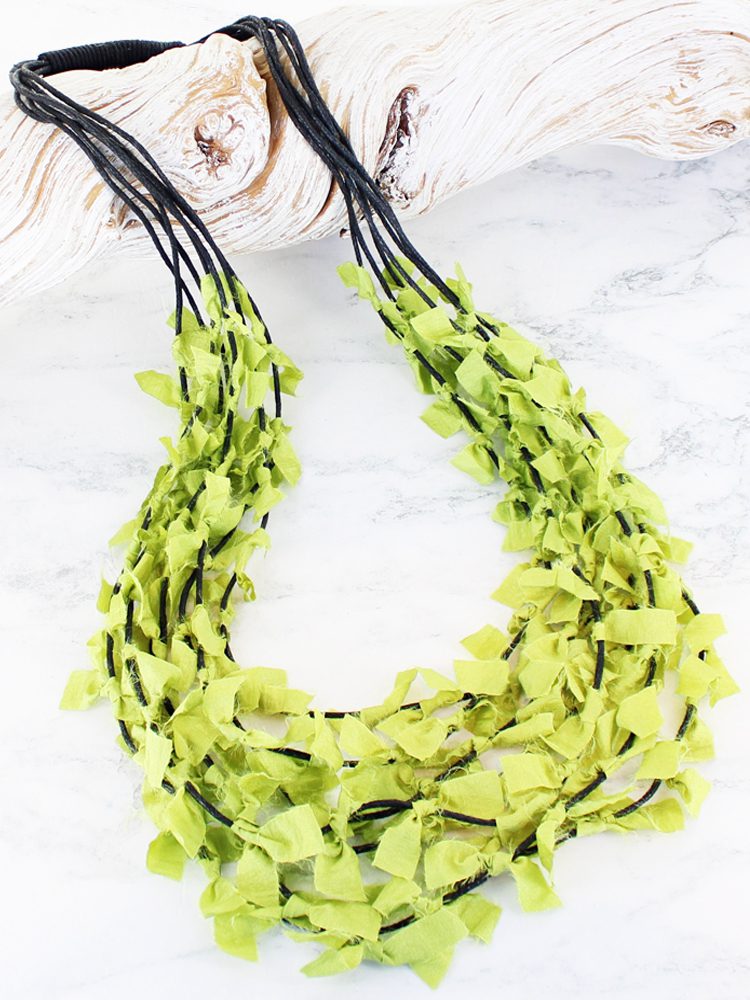 NB1303GN MULTI-STRAND KNOTTED FABRIC NECKLACE