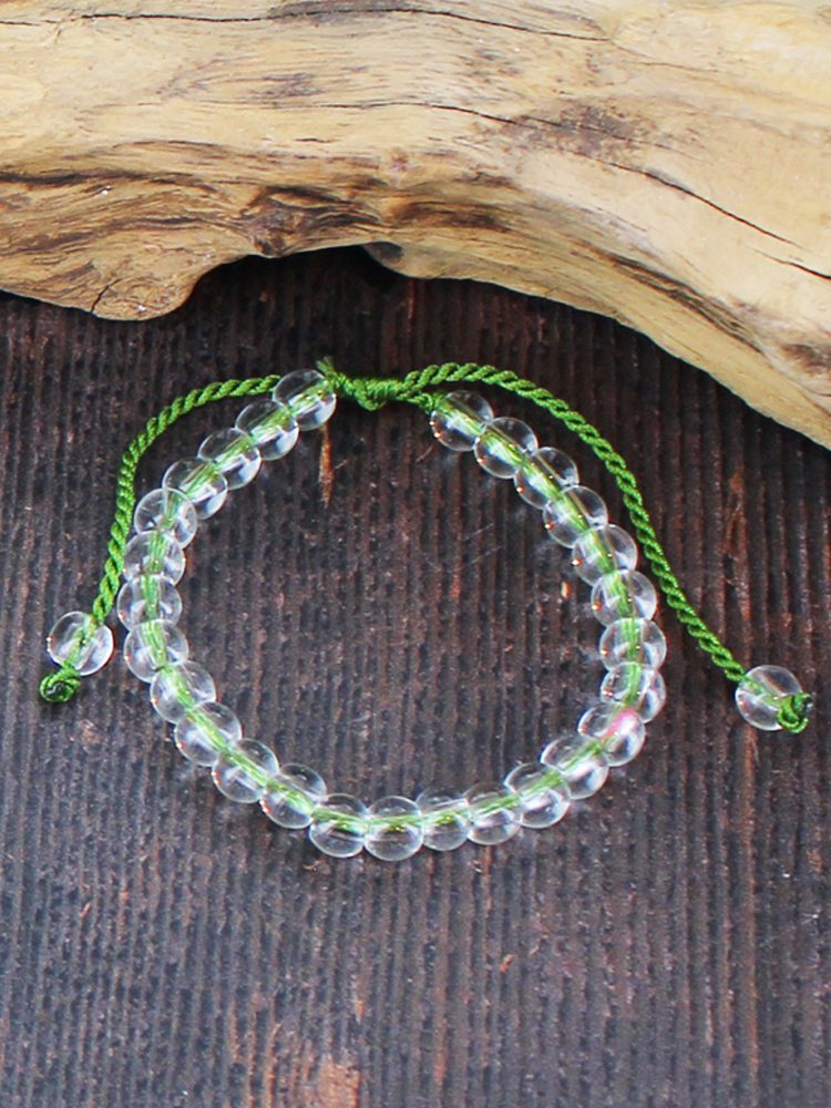 NB1404GN GLASS BEAD & TASSEL TIE BRACELET