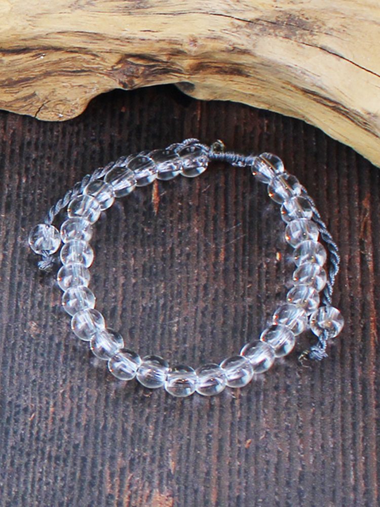 NB1404GY GLASS BEAD & TASSEL TIE BRACELET