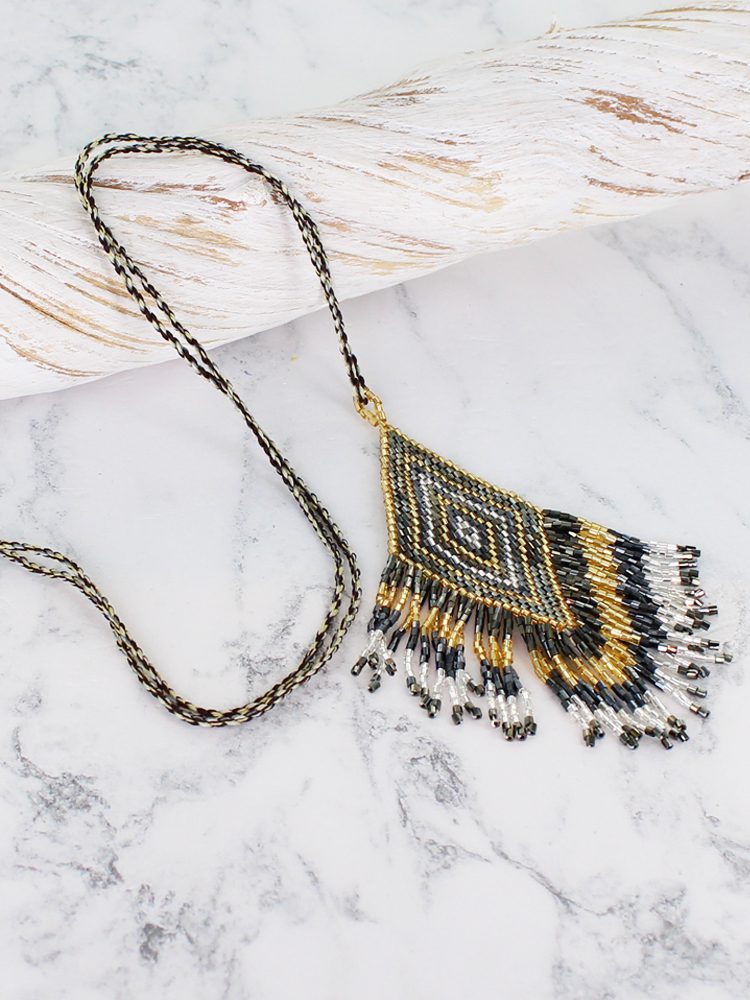 PP6205GY BEADED AZTEC PENDANT NECKLACE