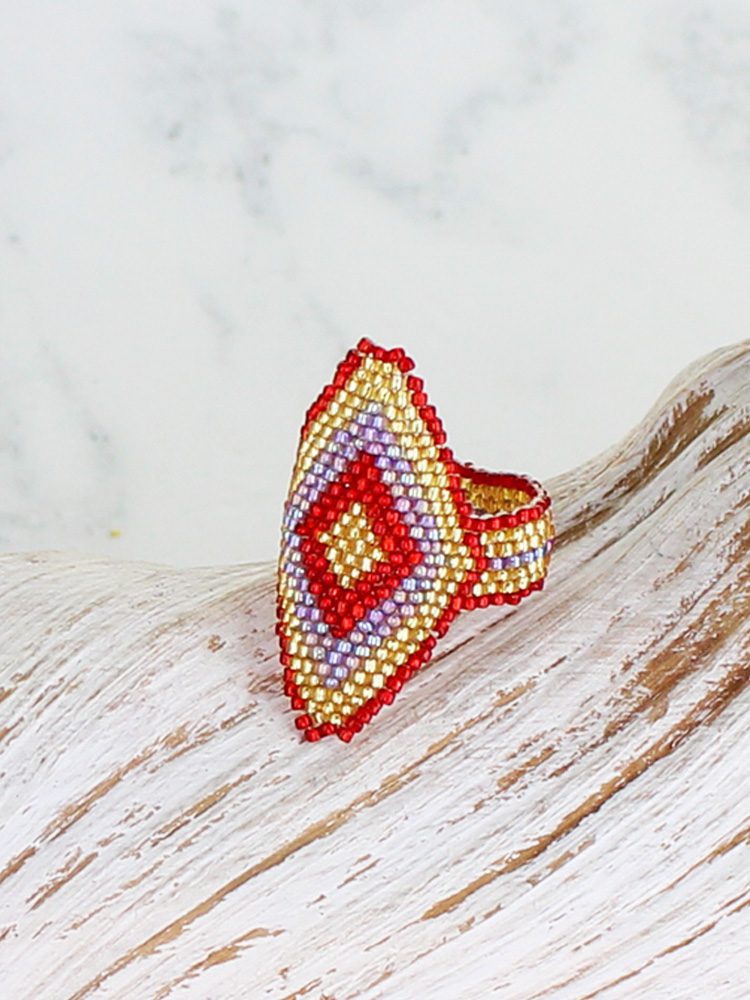 PP6207R BEADED AZTEC RING (ONE SIZE)
