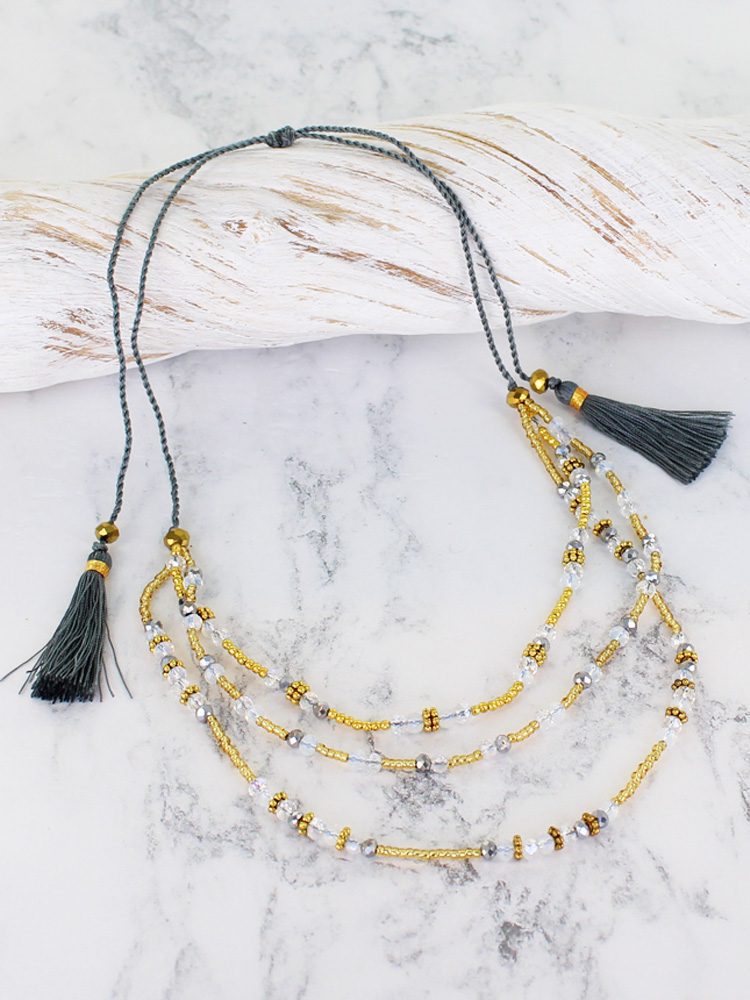 PP6208GY DELICATE TRIPLE STRAND CRYSTAL BEAD NECKLACE