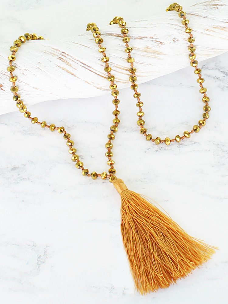 PP6704BR LONG CRYSTAL BEAD TASSEL NECKLACE – BRONZE / GOLD