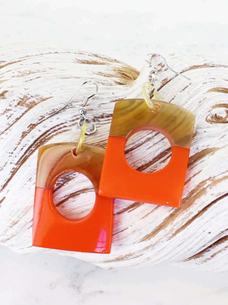 RA1002OR RESIN & HORN EARRINGS WITH HOLE