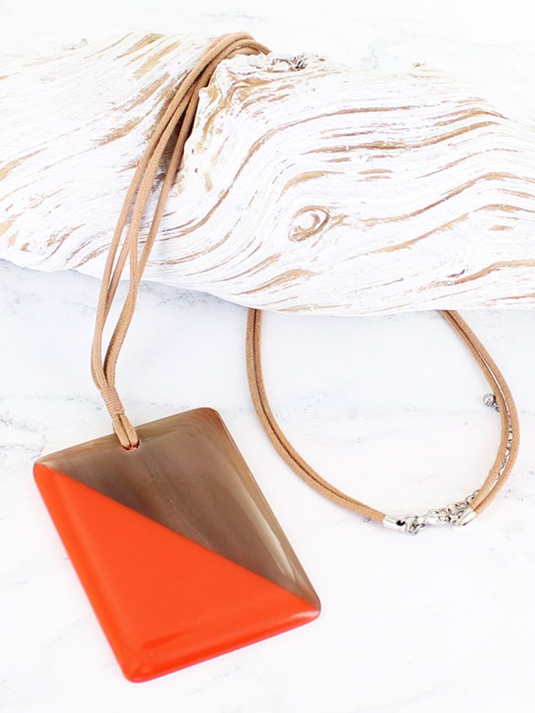 RA1005OR RECTANGULAR RESIN & HORN PENDANT NECKLACE