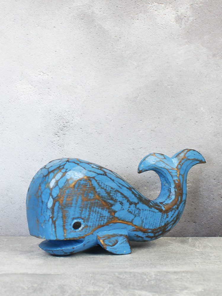 RC1302BLU CARVED DISTRESSED WOODEN WHALE (20CM)