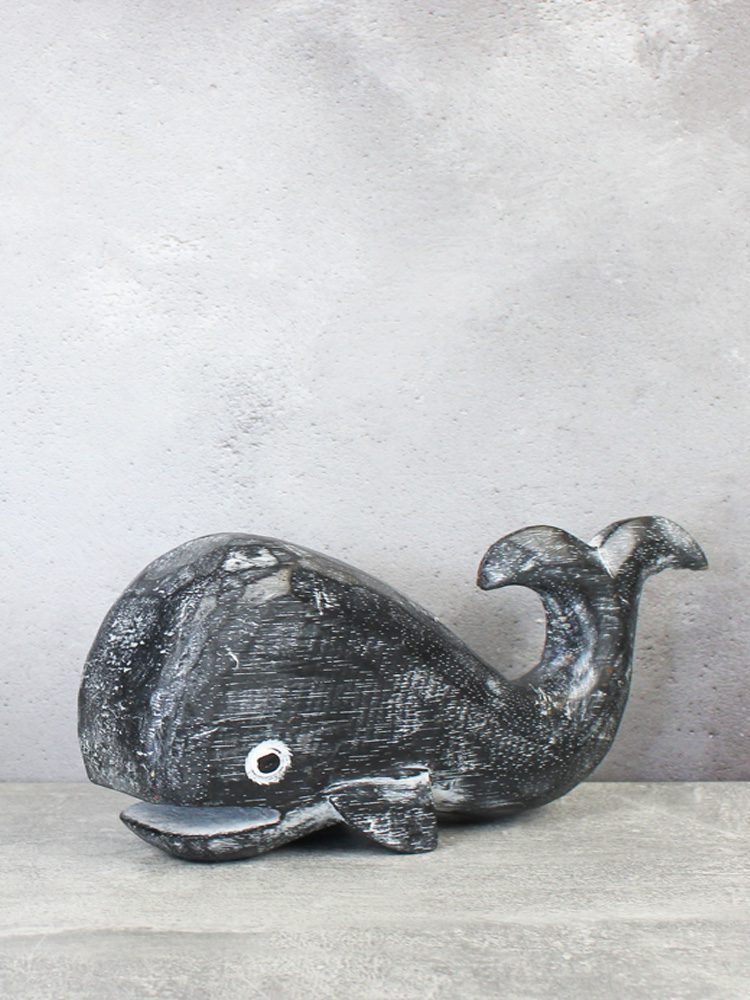 RC1302GY CARVED DISTRESSED WOODEN WHALE (20CM)
